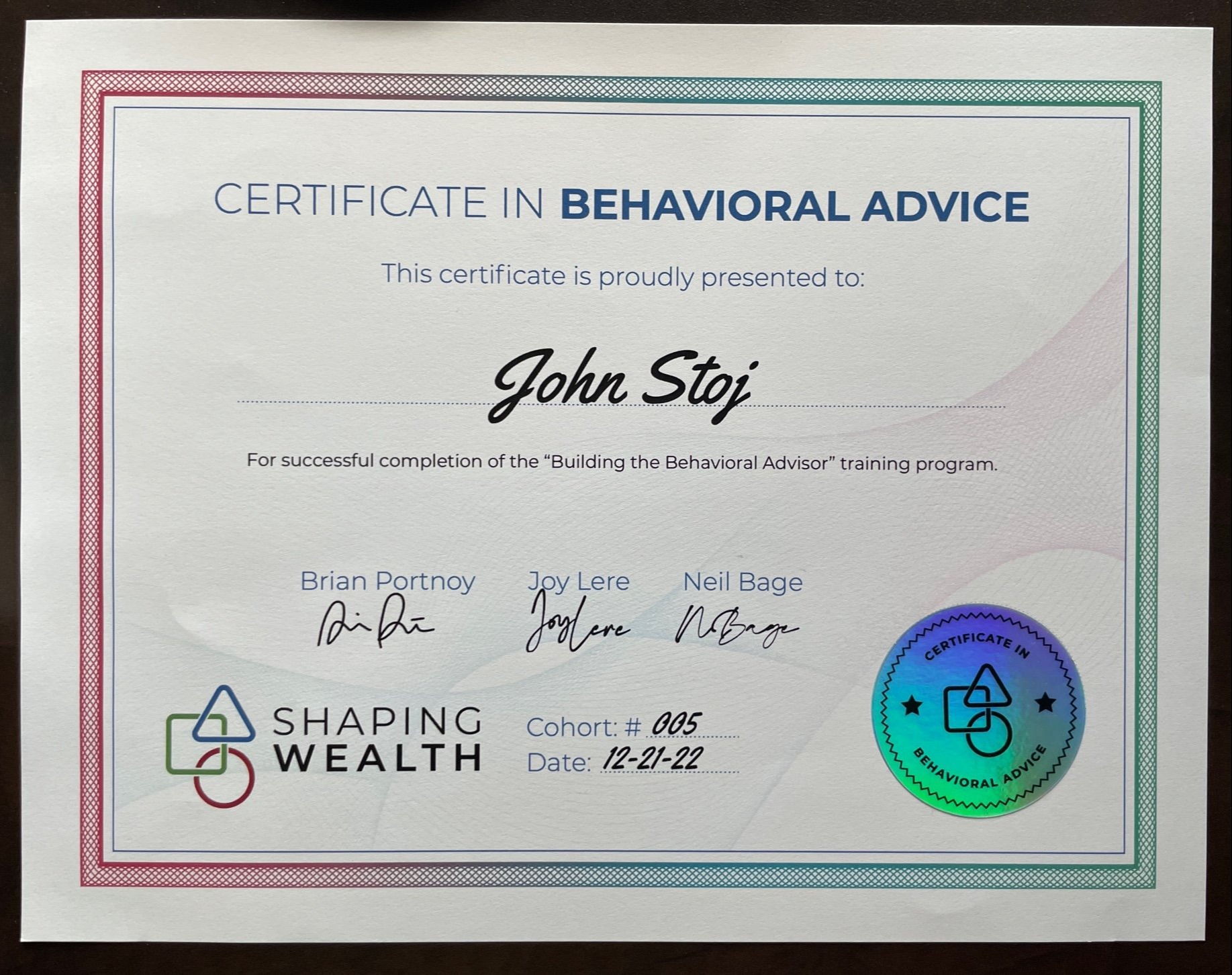 I believe in the Japanese concept of kaizen, or continuous improvement. I also believe that how we communicate with each other, whether advisor to client or between clients, within our families, about money is often more important than, “the math.” The program in Behavioral Advice given by Shaping Wealth helped me immensely, and I hope that it might help you as well.